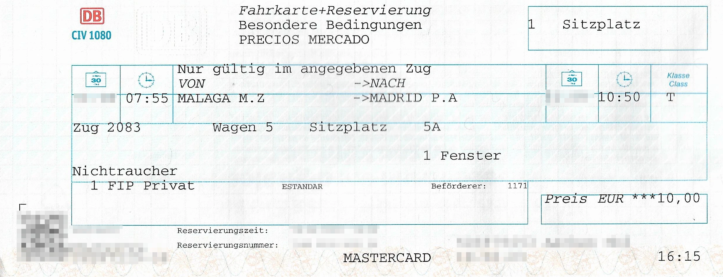 Beispielticket AVE von Malaga nach Madrid in Klasse T
